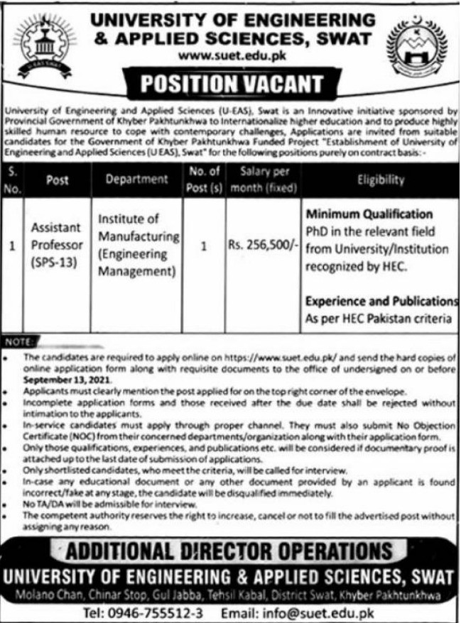university of swat Jobs, Teaching/Faculty Positions September 2021