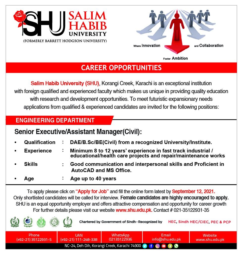 Salim Habib University has announced a new position in Engineering Department.