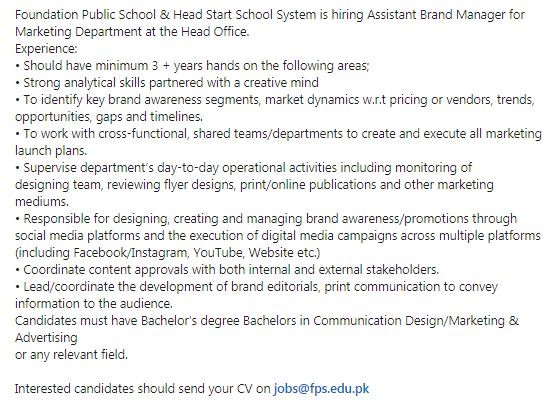 Foundation Public School & Head Start School System is hiring Assistant Brand Manager for