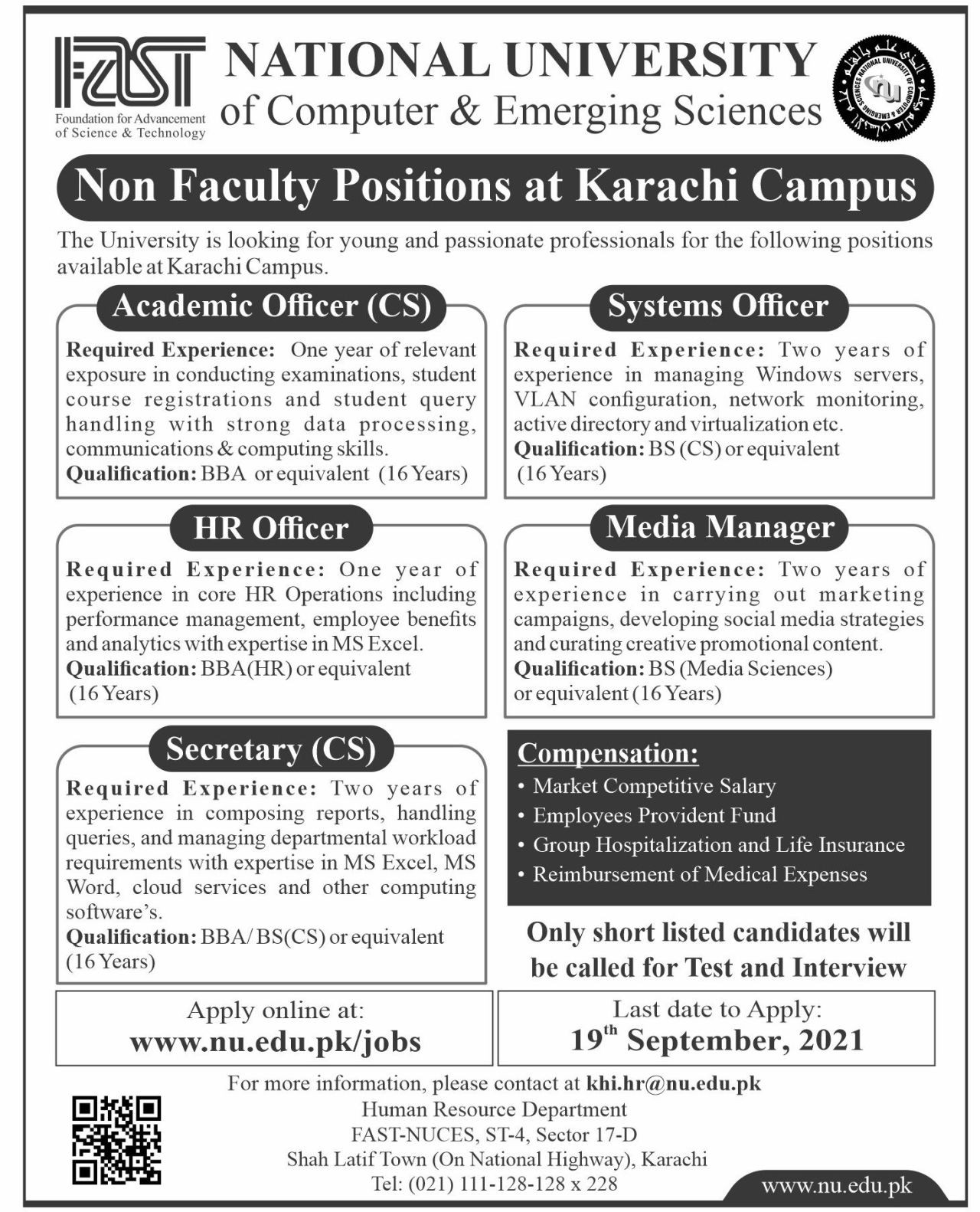 FAST National University Islamabad Jobs, Management Positions September 2021
