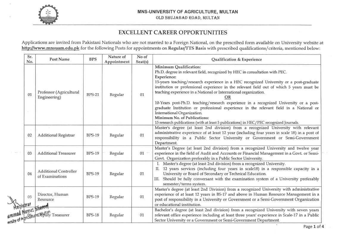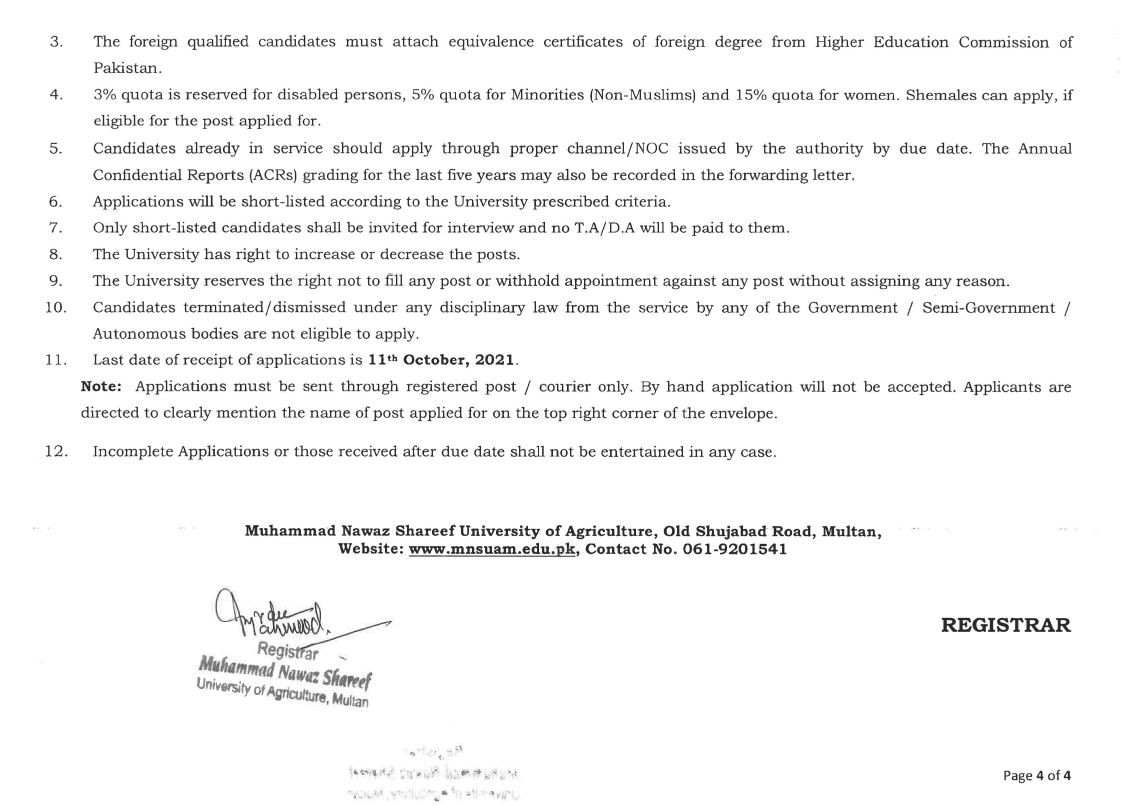 Muhammad Nawaz Sharif University of Engineering & Technology Jobs, Teaching/Faculty & Management Positions September 2021