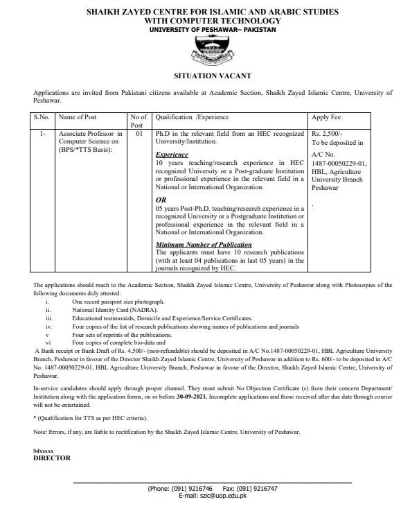 University of Peshawar Jobs, Teaching/Faculty Position September 2021