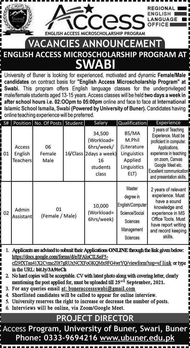Teaching/Faculty & Management, university of Buner Jobs September 2021