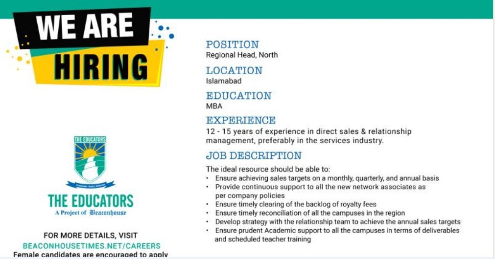 FOR MORE DETAILS, VISIT BEACONHOUSETIMES.NET/CAREERS Female candidates are encouraged to cool