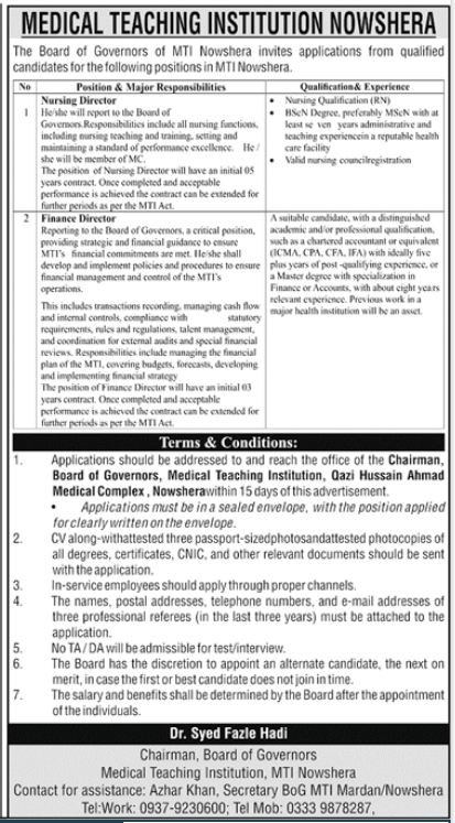 Management Positions, Nowshera Medical College Jobs September 2021