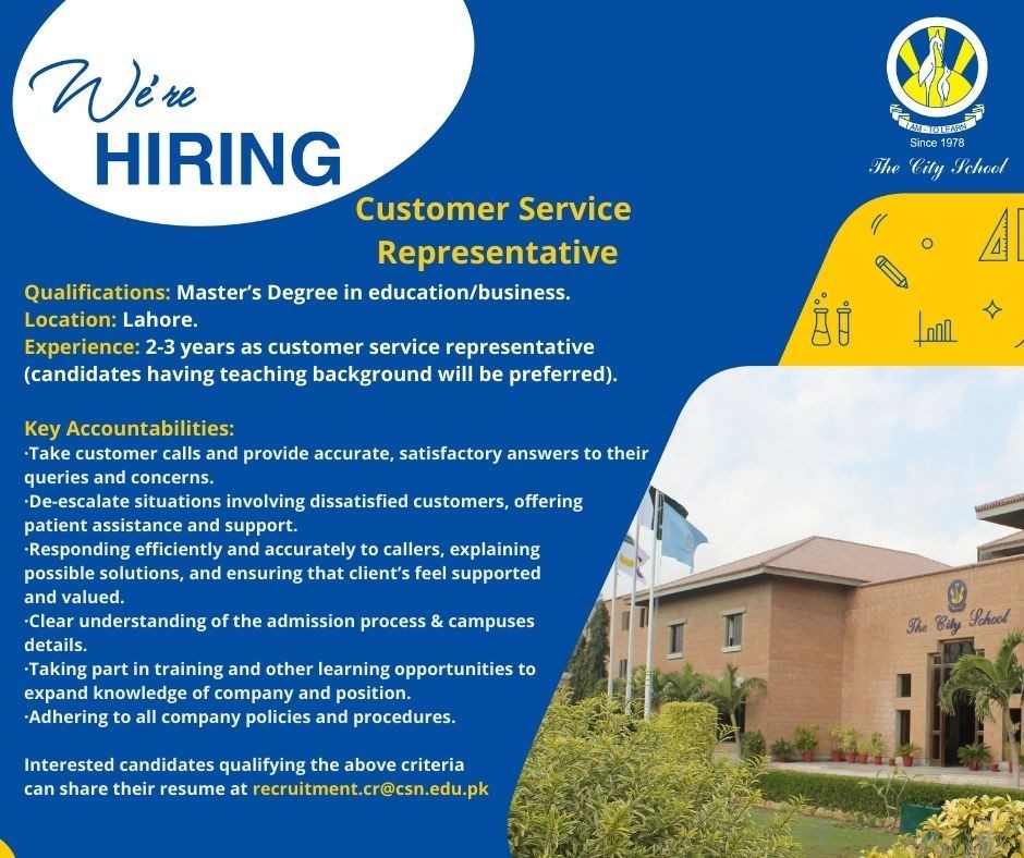 Experience 2-3 years as customer service representative (candidates having teaching background will be preferred).