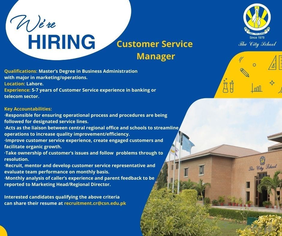 •De-escalate situations involving dissatisfied customers, offering patient assistance and support. 'Responding efficiently and accurately to callers, explaining possible solutions, and ensuring that client's feel supported and valued. 'Clear understanding of the admission process & campuses details. 'Taking part in training and other learning opportunities to expand knowledge of company and position. 'Adhering to all company policies and procedures. ,f. Interested candidates qualifying the above criteria can share their resume at recruitment.cr@csn.eclu.pk