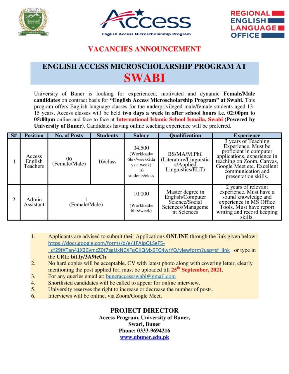 Teaching/Faculty & Management Positions, university of Buner Jobs September 2021