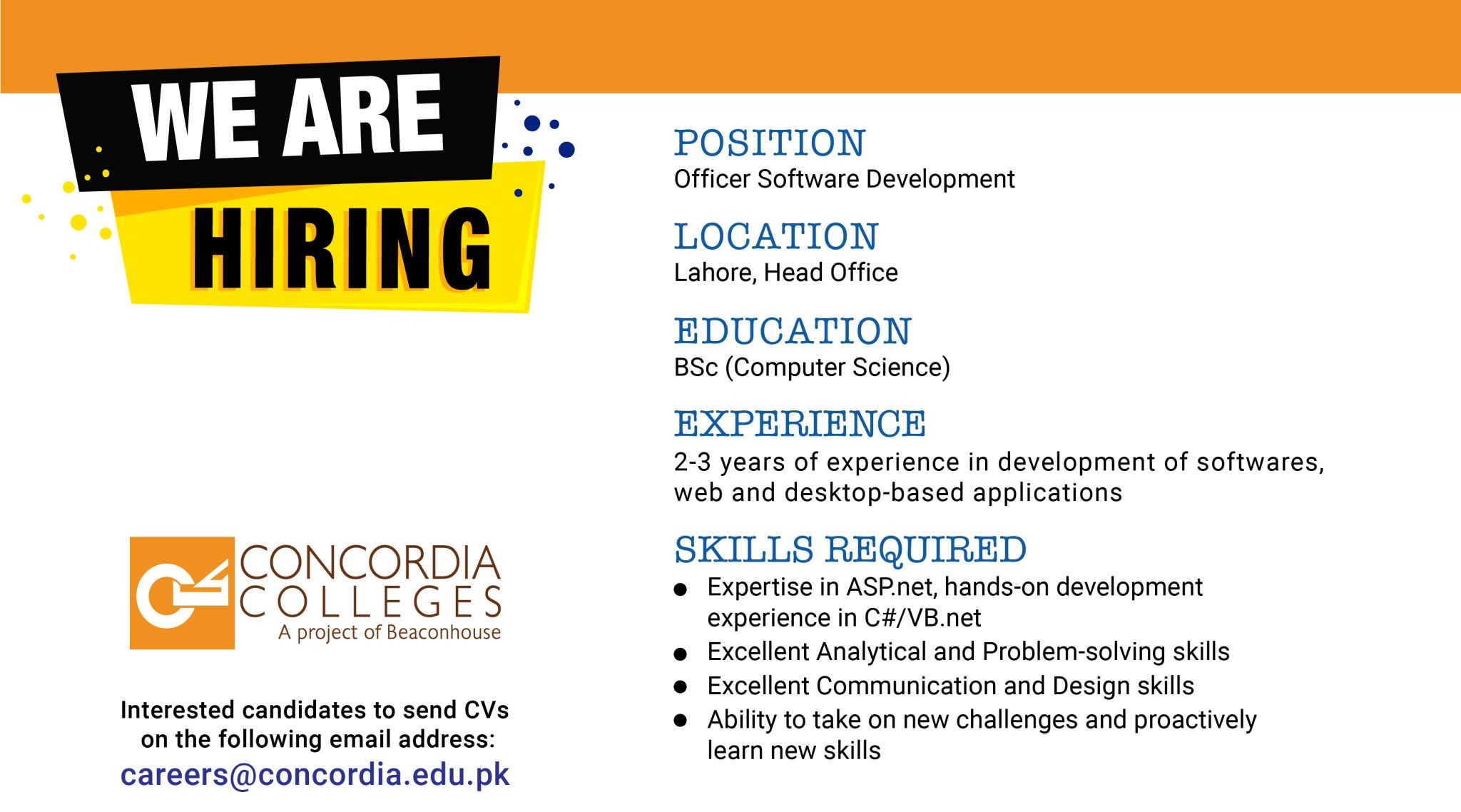 Interested candidates to send CVs on the following email address: careers@concordia.edu.pk