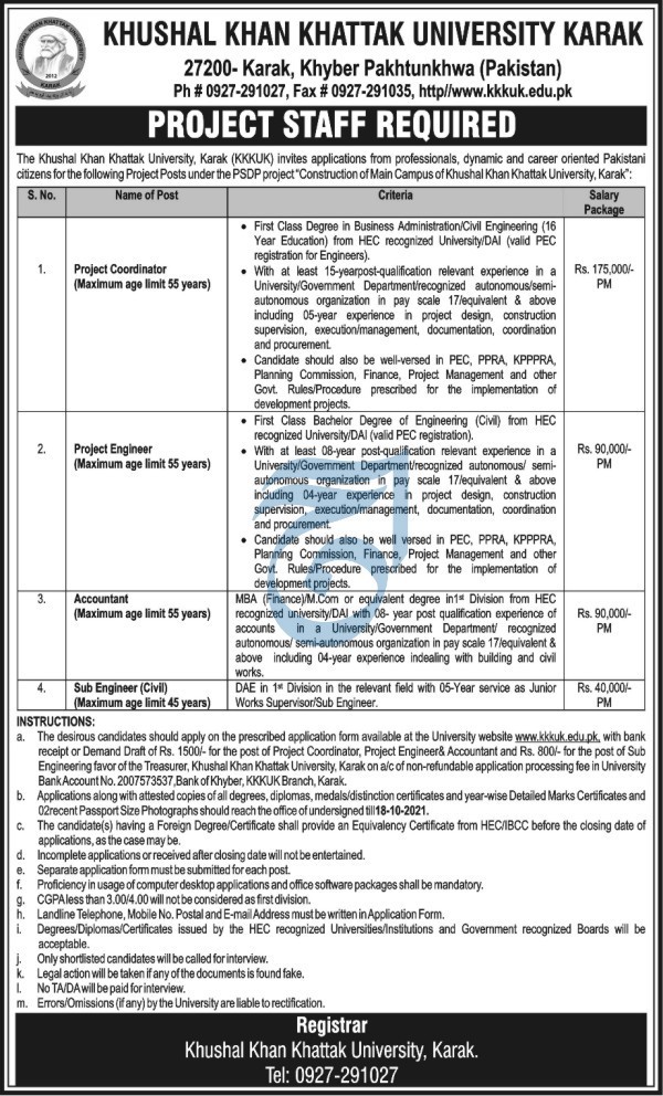 Management Positions, Khushal Khan Khattak University Jobs September 2021