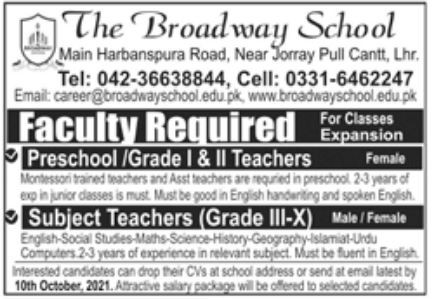 Teaching/Faculty Positions, The Broadway School Jobs October 2021