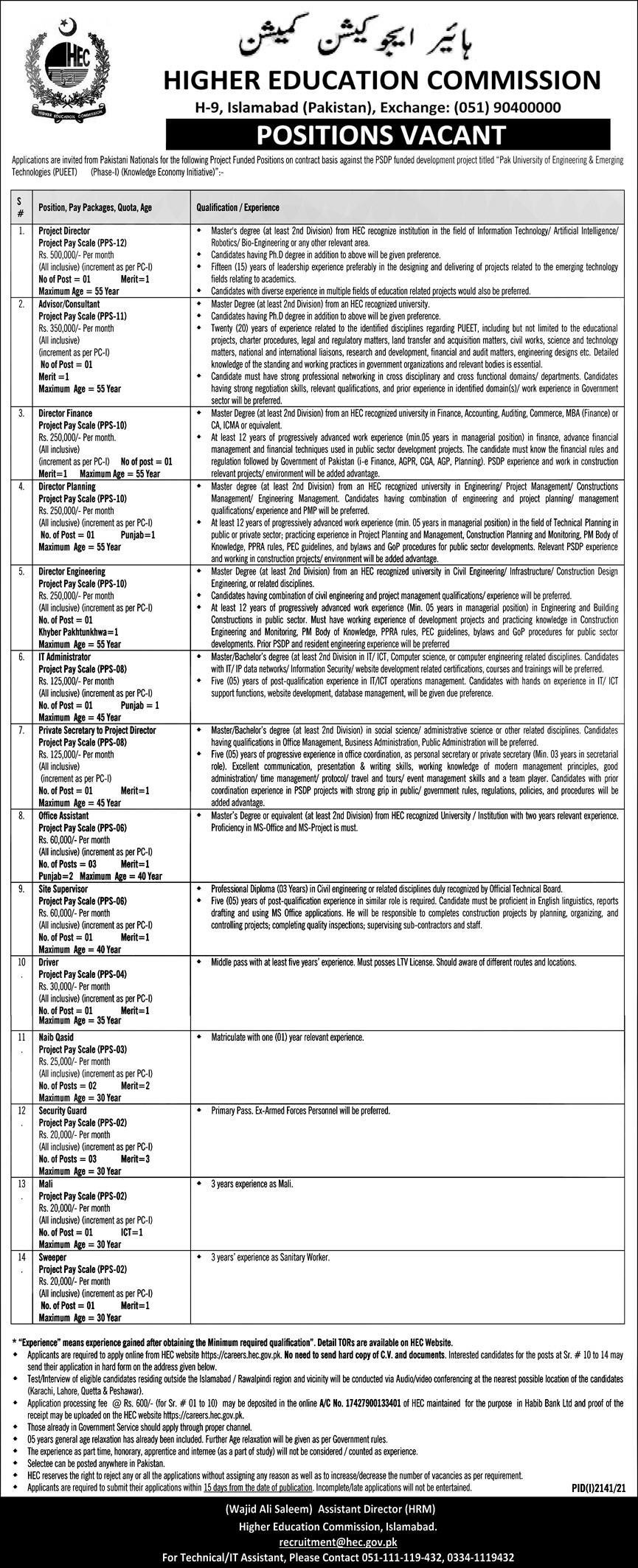Management Positions, Higher Education Commission Jobs October 2021