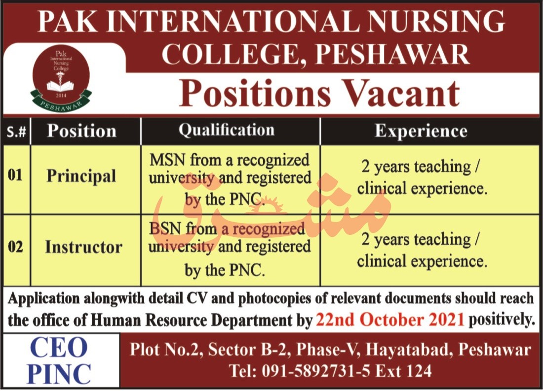 Application alongwith detail CV and photocopies of relevant documents should reach the office of Human Resource Department by 22nd October 2021 positively.