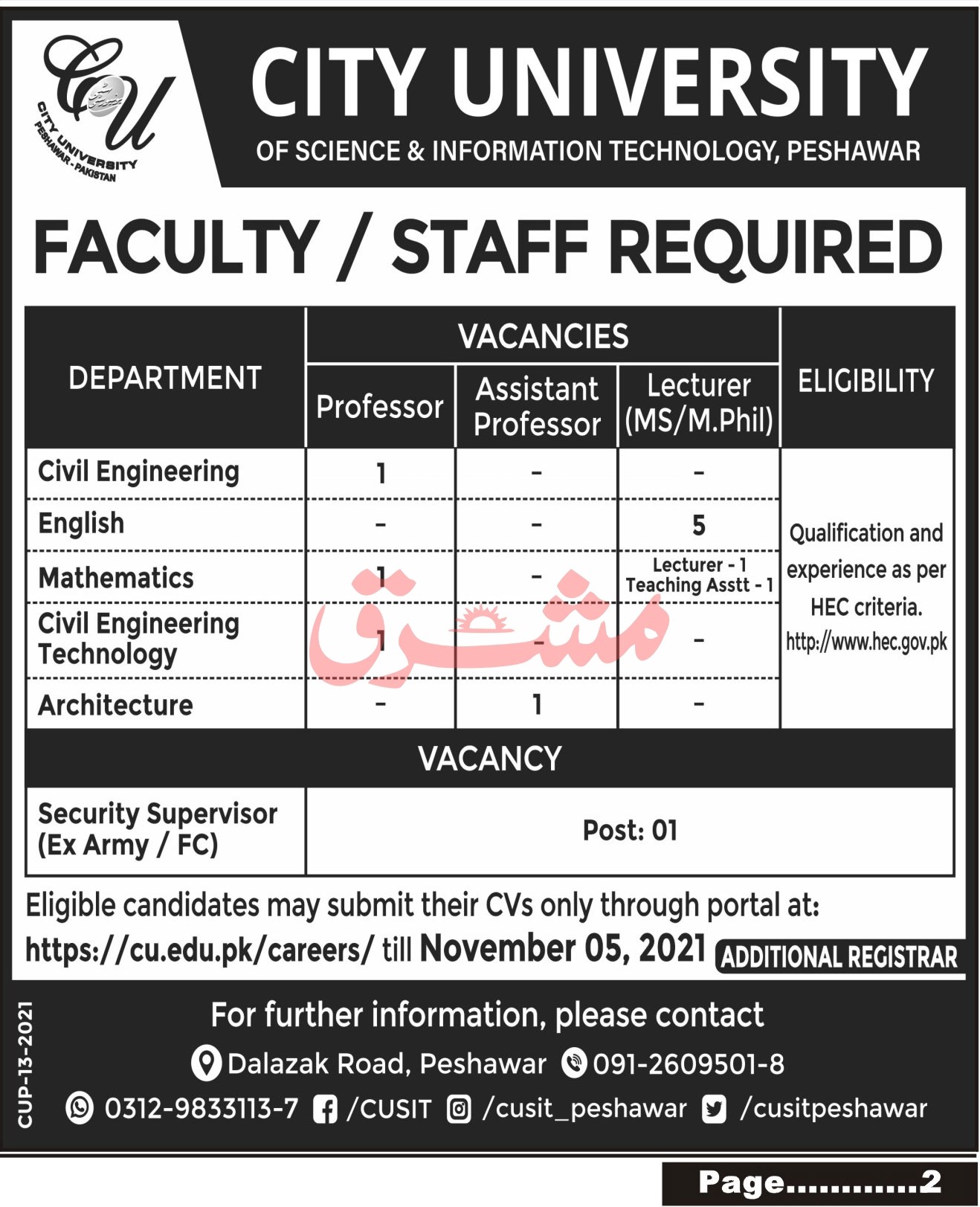 For further information, please contact Dalazak Road, Peshawar 0 091-2609501-8