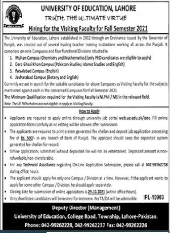 EduJobs Pakistan is an independent platform dedicated to providing information about education sector job opportunities in Pakistan, sourced from prominent newspapers and official institution channels. Our goal is to assist job seekers nationwide by delivering timely updates on available positions. As a precaution, refrain from making any payments if an employer requests fees for activities such as shortlisting or interviews. Ensure that you apply according to the instructions and dates specified in the original job advertisement. EduJobs Pakistan is not liable for inaccuracies or misrepresentations in job ads. If you have any uncertainties, we recommend visiting the institution’s official website or contacting them through their official contact numbers for verification. Please note, EduJobs Pakistan operates independently and is not affiliated with any government entity.