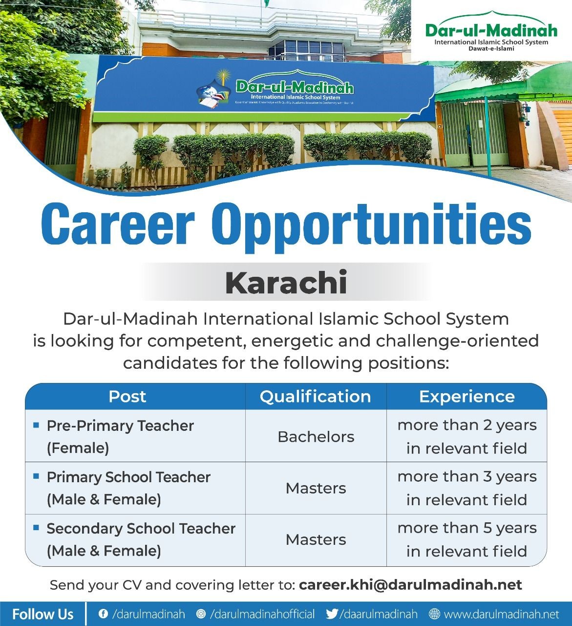 Send your CV and covering letter to: career.khi@darulmadinah.net