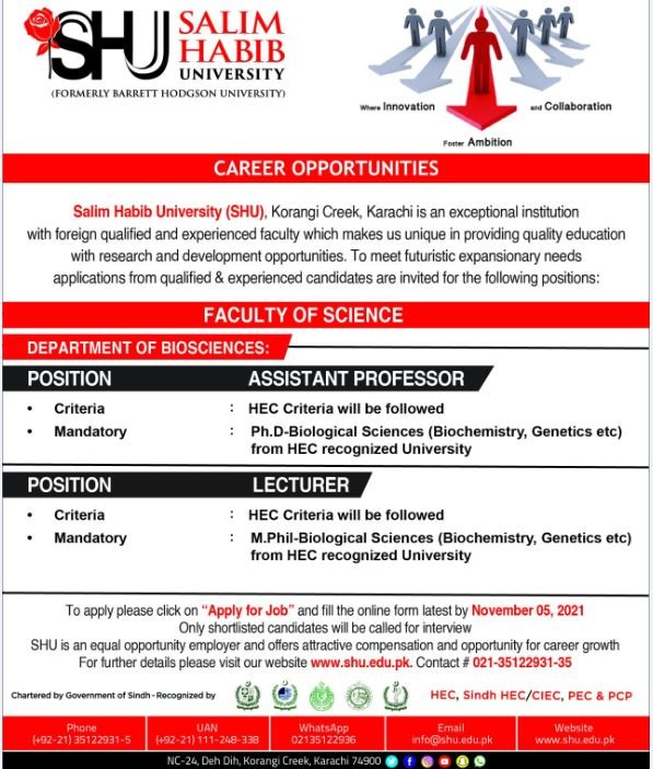 We are hiring full time Assistant Professor and Lecturer at Department of Biosciences, Faculty of Science. Only shortlisted candidates will be called for interview.