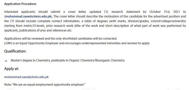LUMS is an Equal Opportunity Employer and encourages underrepresented minorities and women to apply.