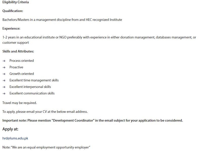 Important note Please mention "Development Coordinator" in the email subject for your application to be considered.