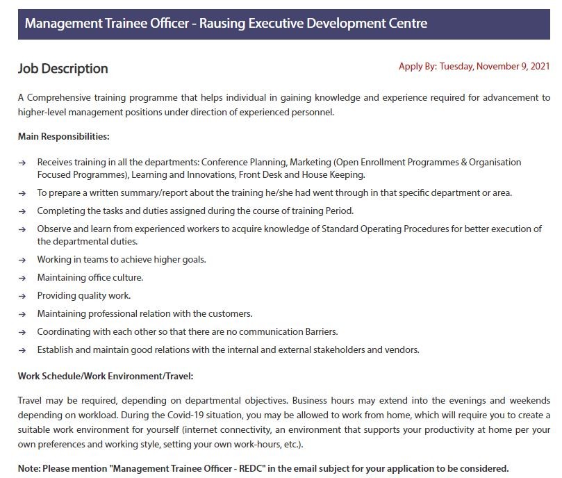 Note Please mention "Management Trainee Officer - REDC" in the email subject for your application to be considered.