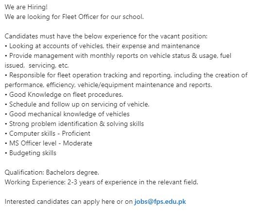 Interested candidates can apply here or on jobs@fps.edu.pk
