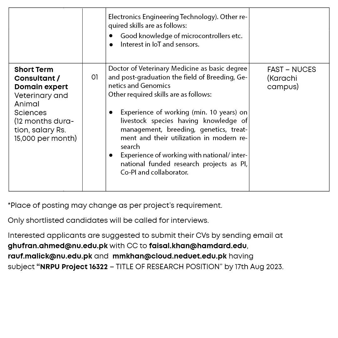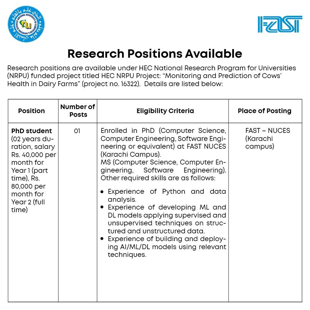 Positions Vacant at FAST University (Karachi Campus)