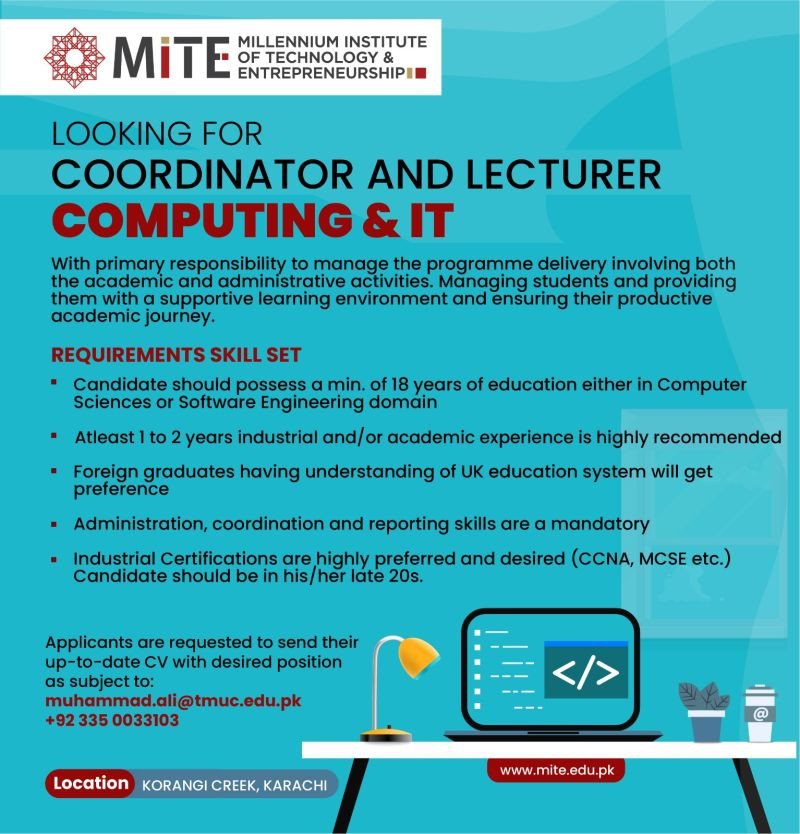Position Vacant at Millennium Institute of Technology and Entrepreneurship, Karachi
