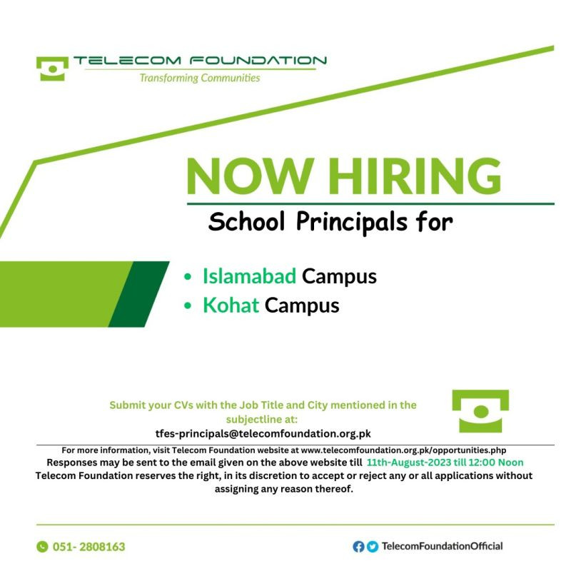 Positions Vacant at Telecom Foundation Education System, Islamabad & Kohat