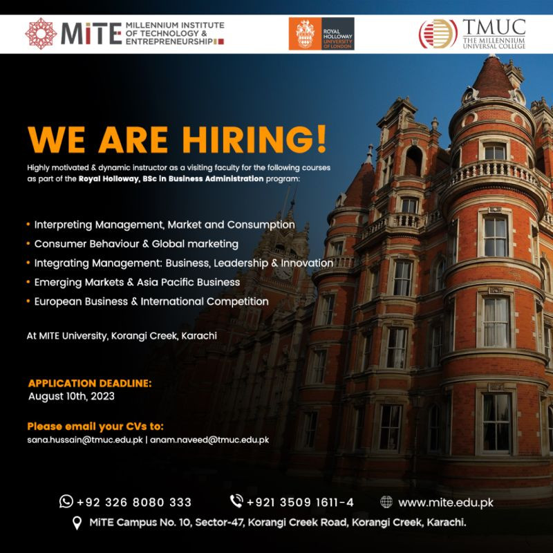 Visiting Faculty Required at MITE, Karachi
