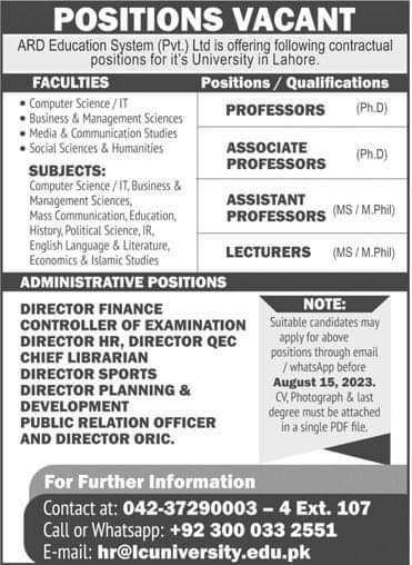 Teaching and Non-Teaching Positions at Lahore City University - Apply Now