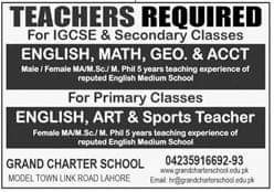 Teacher Required at Grand Charter School, Lahore