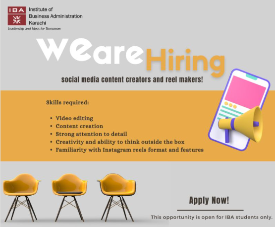 Send your CV here: communications@iba.edu.pk by Thursday, September 14.