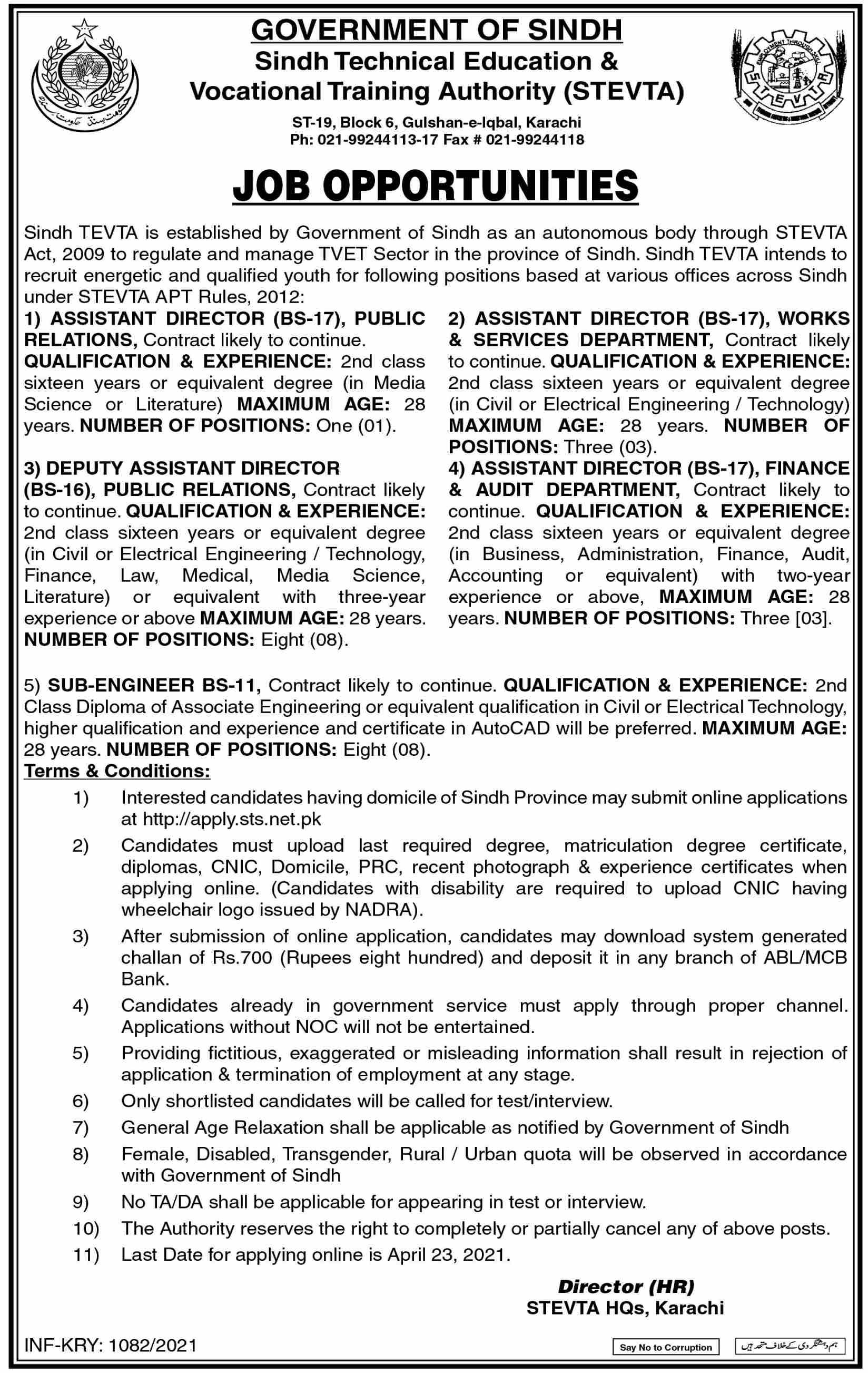 Sindh Technical Education and Vocational Training Authority, Management Jobs April 2021