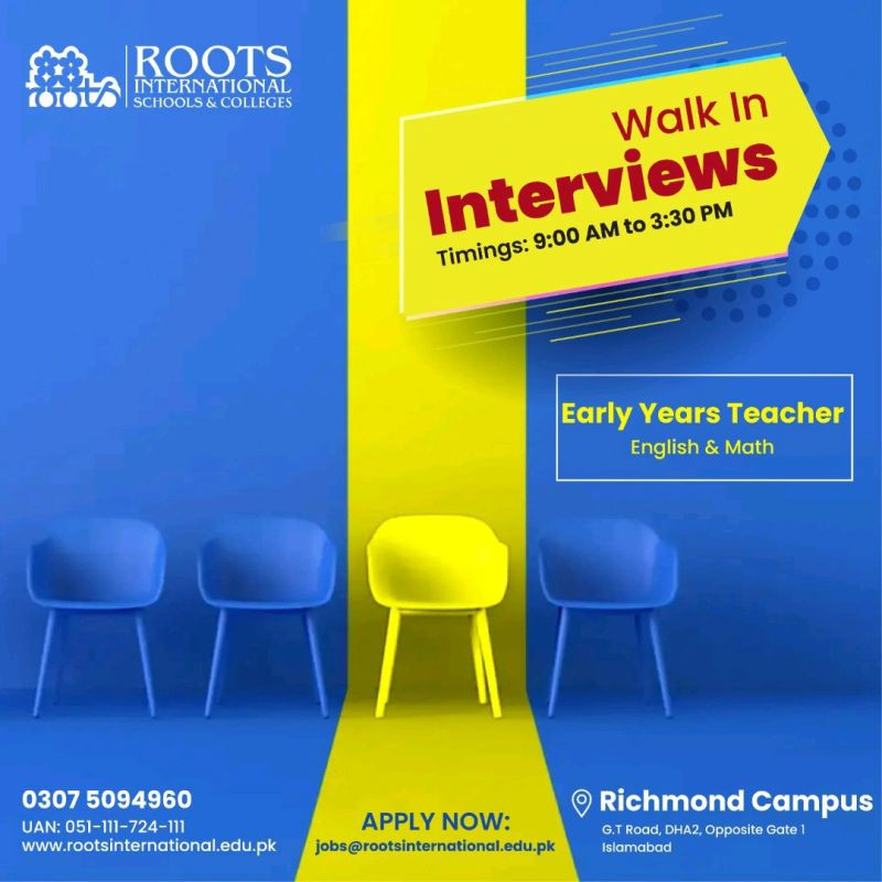Early Years Teacher Job at Roots Intl Schools & Colleges, Islamabad
