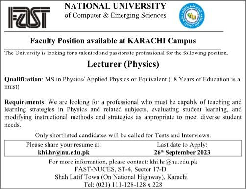 EduJobs Pakistan is an independent platform dedicated to providing information about education sector job opportunities in Pakistan, sourced from prominent newspapers and official institution channels. Our goal is to assist job seekers nationwide by delivering timely updates on available positions. As a precaution, refrain from making any payments if an employer requests fees for activities such as shortlisting or interviews. Ensure that you apply according to the instructions and dates specified in the original job advertisement. EduJobs Pakistan is not liable for inaccuracies or misrepresentations in job ads. If you have any uncertainties, we recommend visiting the institution’s official website or contacting them through their official contact numbers for verification. Please note, EduJobs Pakistan operates independently and is not affiliated with any government entity.