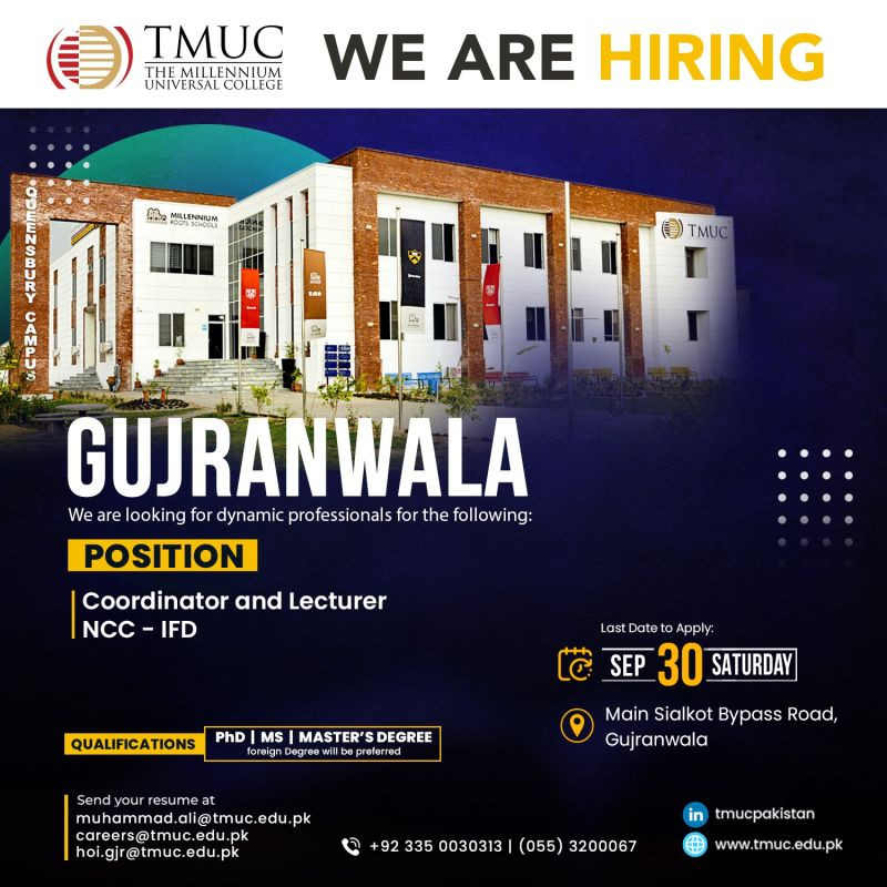 Coordinator and Lecturer Job at TMUC, Gujranwala Campus