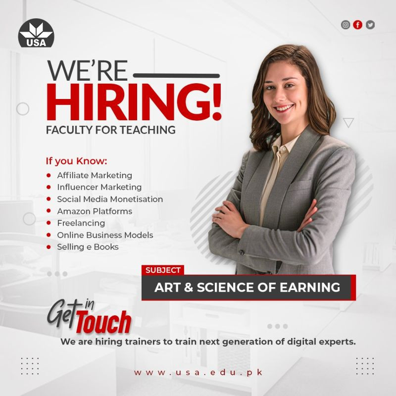 Kindly send your resume at hr@usa.edu.pk