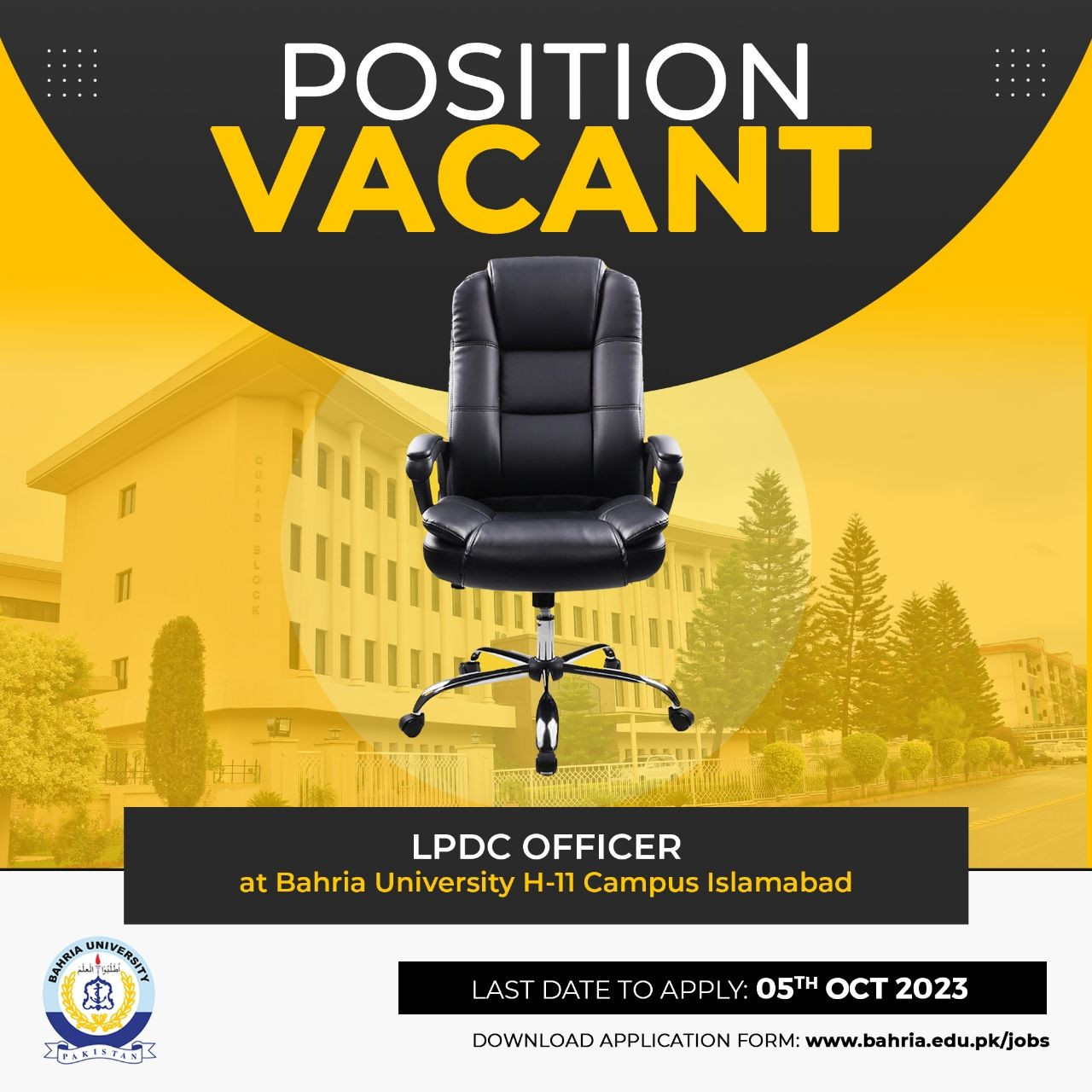 Please visit our website http://bahria.edu.pk/jobs to download job application form.