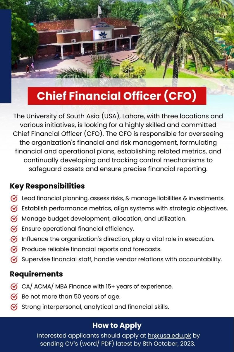 University of South Asia is Hiring - Apply Now