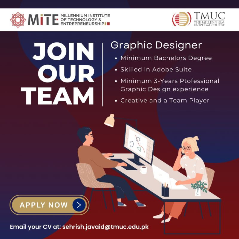 Send your portfolio and resume to sehrish.javaid@tmuc.edu.pk and unleash your creativity at MiTE!