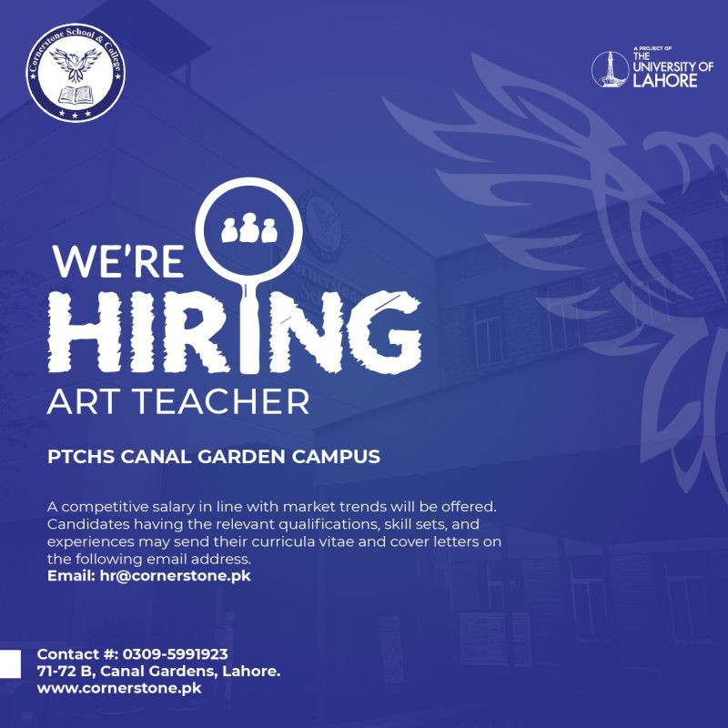 Cornerstone School & College, a prestigious educational institution committed to providing quality education is on the lookout for passionate individuals dedicated to joining our team for several positions at PTCHS Campus.