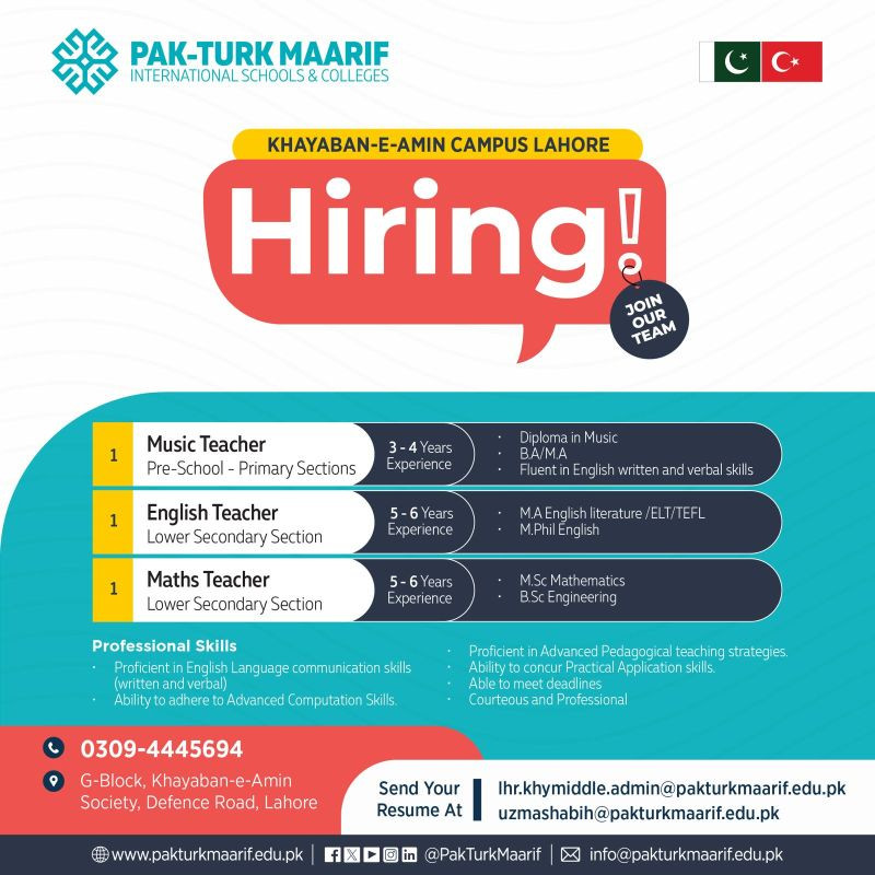 Teaching Jobs at Pak-Turk Maarif International Schools and Colleges
