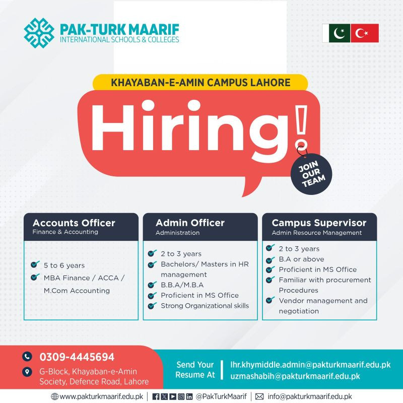 Non-Teaching Jobs at Pak-Turk Maarif International Schools and Colleges