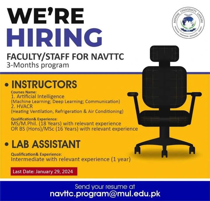 Instructor and Lab Assistant Jobs at Minhaj University