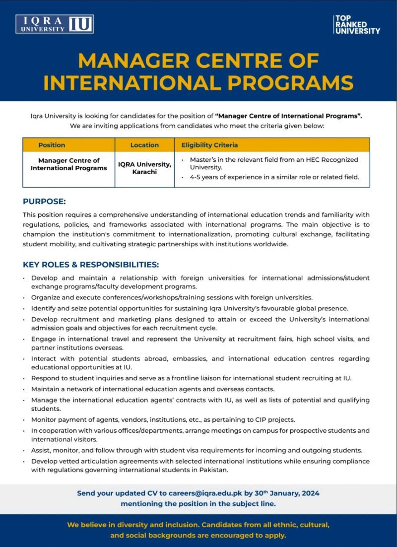 Position Vacant at IQRA University