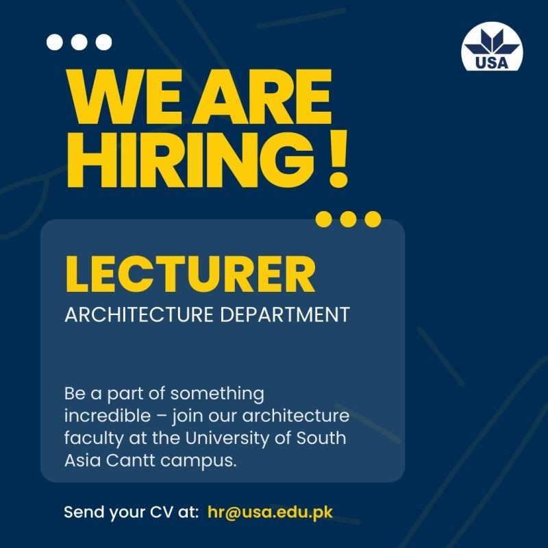 The University of South Asia is on the lookout for a dynamic and dedicated Lecturer to join our esteemed Architecture Department! 🏛️✨