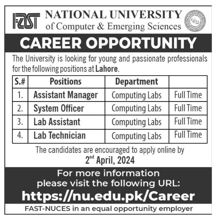 Non-Teaching Jobs at FAST University