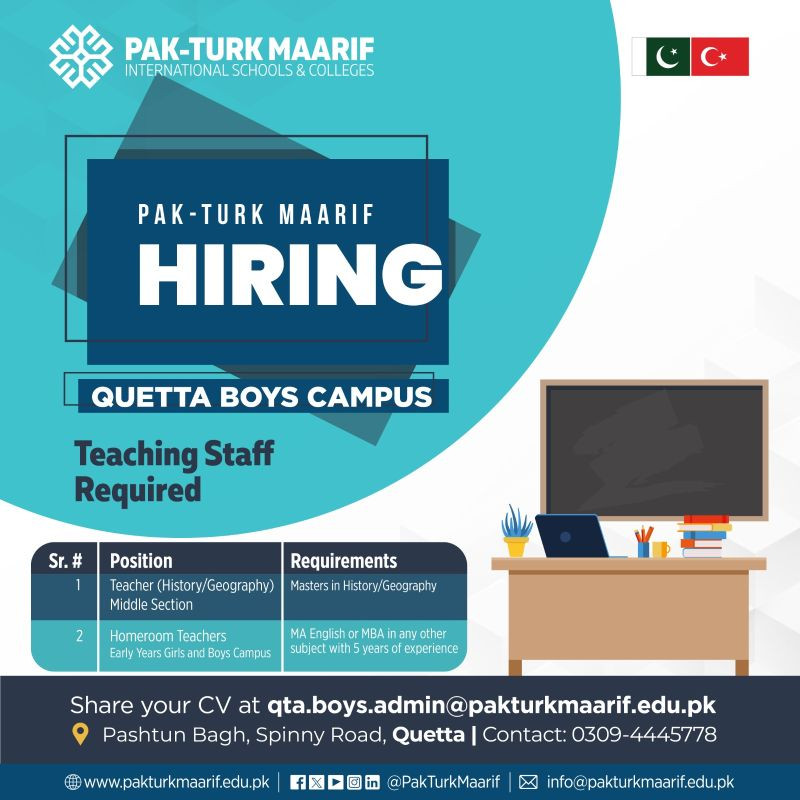 Teaching Staff Required at Pak-Turk Maarif International Schools and Colleges