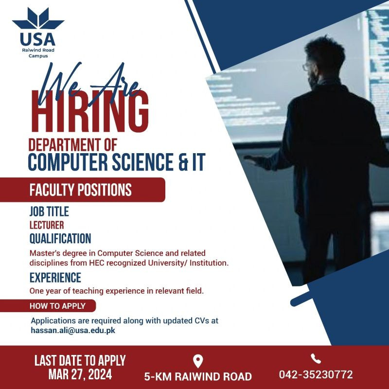 Lecturer Jobs at University of South Asia