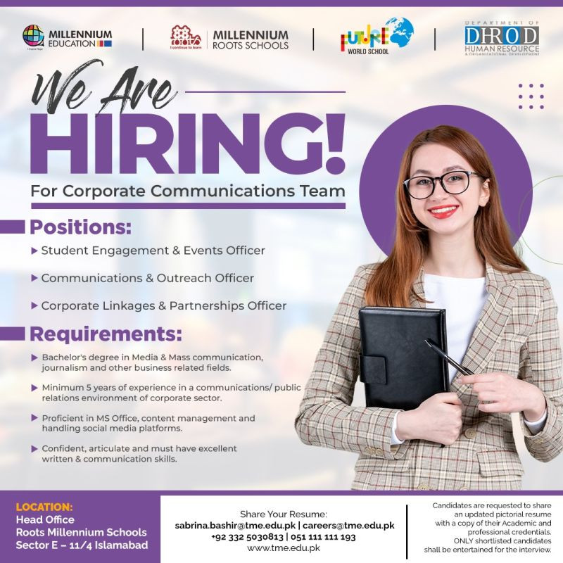 #CorporateCommunications #HiringNow #JoinOurTeam #RootsMillennium #TheMillenniumEducation